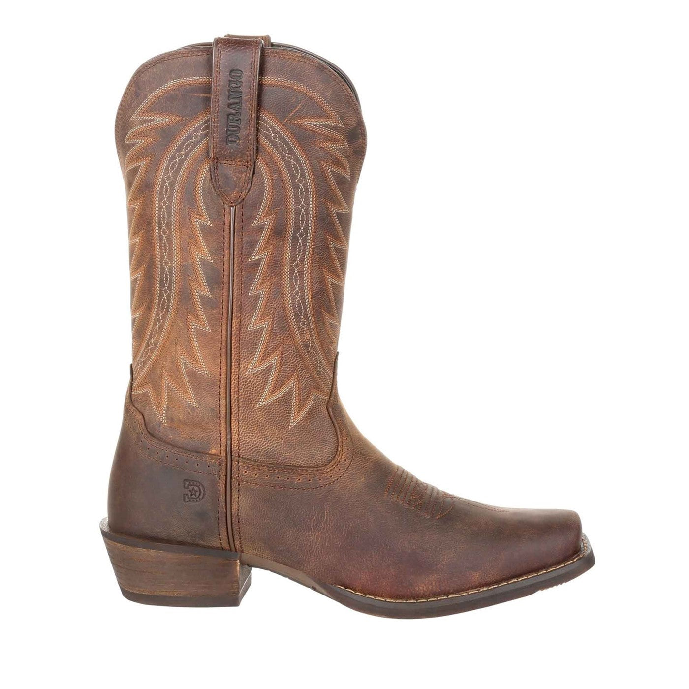 This is the men's Durango's Rebel Frontier in distressed sunset brown, a boot that embodies rugged sophistication and unwavering comfort.
